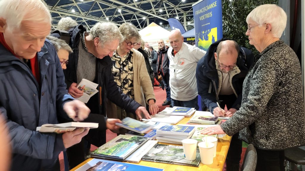 De vereniging heeft zich ook dit jaar weer volop gepresenteerd tijdens de inmiddels 20e Fiets- en Wandelbeurs in de Jaarbeurs. Met zo’n dertig leden hebben we van 14 tot 16 februari drie beursdagen informatie gegeven aan liefhebbers van pelgrimeren.