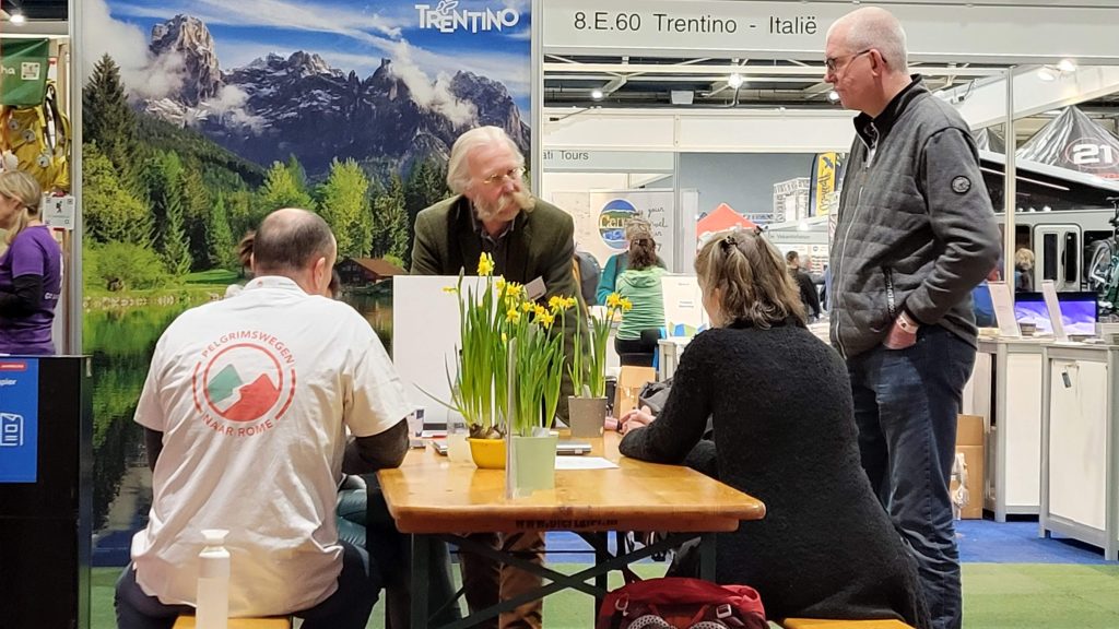 Ook gaven we in de lezingenzalen zeven keer een lezing over de belangrijkste routes naar Rome: de Via Francigena door Sander van der Zee, de Duitslandroutes op de fiets door Wim van Eck, idem te voet door Titia Meuwese en uiteraard via de Franciscaanse Voetreis vanuit Florence door het illustere duo Pieter Quelle en Ruud Verkerke. Zelf heb ik op verzoek van Duitsland-Themaland een lezing gegeven over de Ökumenische Pilgerweg, die over de Via Regia van Görlitz naar Vacha loopt en