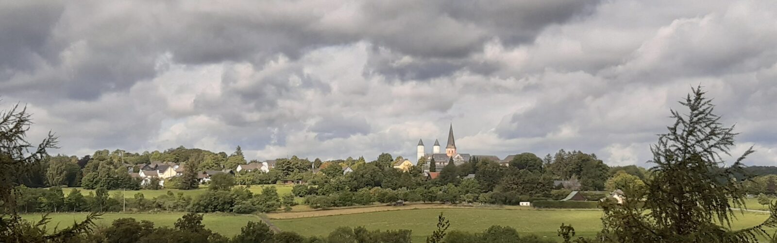 Ik kom ongedachte pareltjes tegen als Blankenheim, een klein Monschau; ik kom vulkanische meren tegen in vroegere kraters- en eindeloze bossen, dat wordt me wel eens te gek. Het is óok zwaar, zonder meer, een goede voorbereiding op de Alpen. Wat me opvalt, niet onbelangrijk voor Nederlanders: het is hier bespottelijk goedkoop. Genoeg reclame nu! Van Steinfeld ging ik gesterkt weg, met een ‘grap’ in mijn herinnering. Ook het Duitse onderwijs kent z’n tekortkomingen blijkbaar. Aan het eind van een rondleiding door het klooster kwamen we bij het portaal van het hoofdgebouw, waarboven een in steen gehouwen Christusfiguur stond met daaronder: ANNO MDCL ..(en nog wat).De gids wees erop en vertelde over een jonge man die haar vroeg: die heilige Anno -wie is dat eigenlijk, die ken ik niet! Uit de blog van Bert Slaa